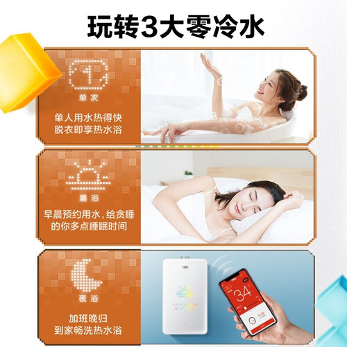 三大零冷水模式能够提前预热热水管中的冷水,让热水一开即有。一键切换专有水温,轻松找到适合的温度,沐浴更方便。