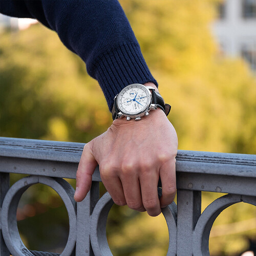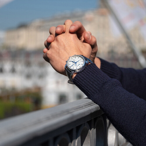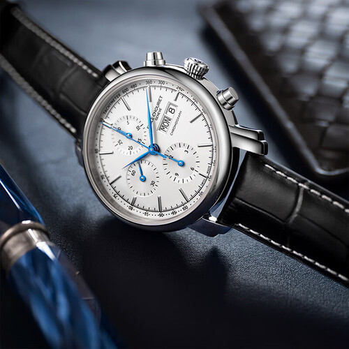 经典的白色喷砂表盘,搭配多功能小表盘,大气从容,轻松驾驭各种场合。透底设计,清晰看到机芯轮转的美感。