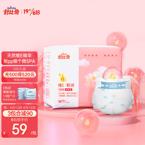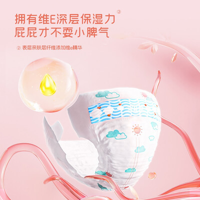 萃取天然维E精华成分,深层保湿呵护宝宝的娇嫩肌肤,快速抚平肌肤干燥小情绪。超薄的芯体内置,大量吸收不变形,干爽小屁屁。