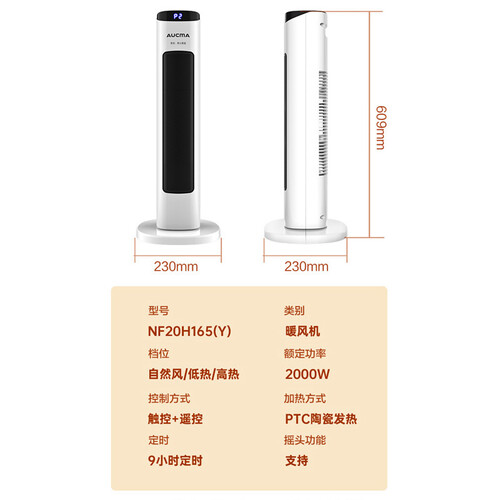 PTC发热体搭载2000W大功率,速热速暖,帮你对抗冬季的寒冷。直流变频电机,具有动力强劲稳定、功耗低、节能省电等优点。