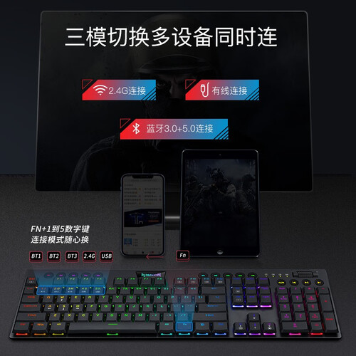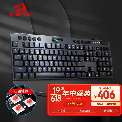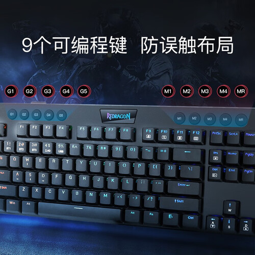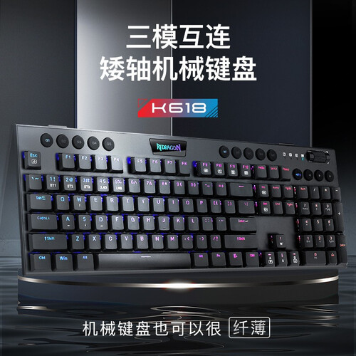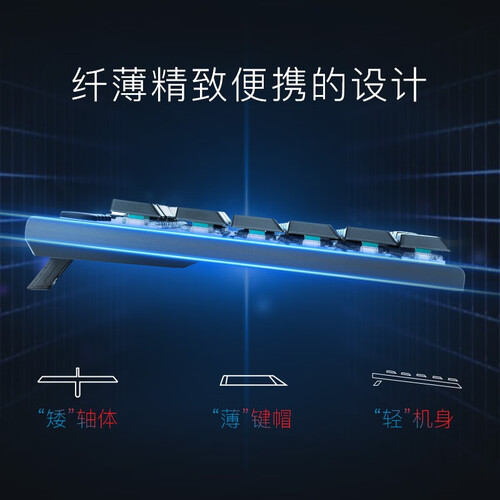 采用纤薄设计,大幅缩短触发距离,尽享全新的操作体验。悬浮式机械矮轴体,触发快速布局合理,使用起来更舒适称心。
