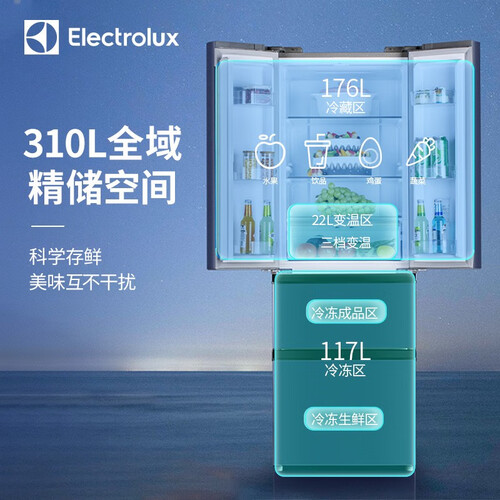 635MM纤薄机身,可以轻松嵌入厨房,摆在厨房更省空间。310L大容量空间,一次可存储多样食材,满足全家饮食需求。