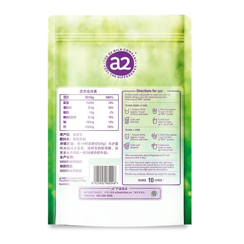 纯净好牧场奶源,自然纯净,让营养新鲜直达。每100g奶粉中钙含量高达1200mg,强健骨骼和牙齿,让身体更硬朗。