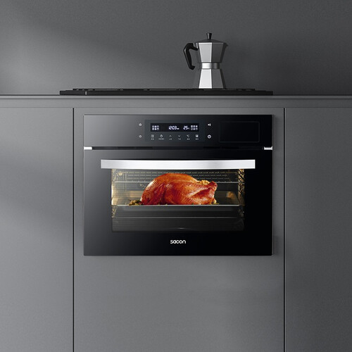 9个蒸烤模式,满足你对食物的要求,即便是比较难的食物也可以。24h定时预约,无论在哪里都可以操作,进行烹饪。