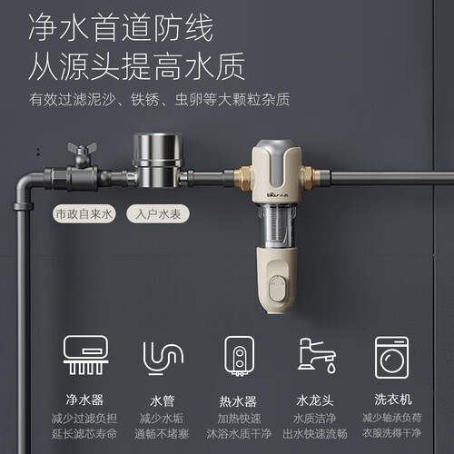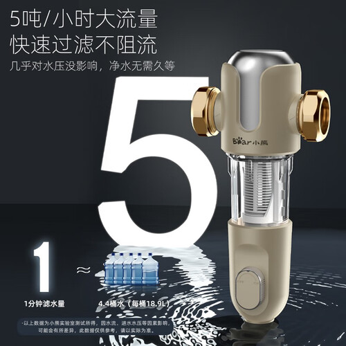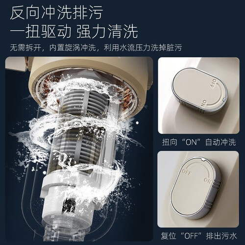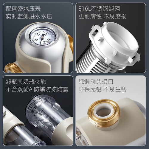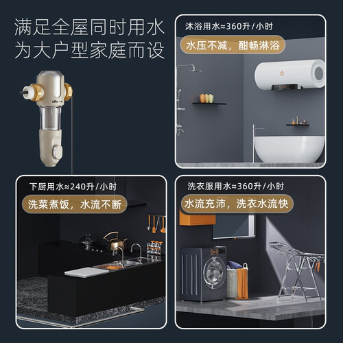 拥有5T大通量,适合多口之家使用,满足饮用洗刷等多种用途。采用不锈钢滤网,避免水的侵蚀,长效洁净不中断。