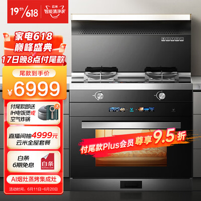 内置高速大叶轮电机,拥有19m³/秒的大吸力,快速排烟爆炒不过脸。70L蒸烤大容量,多层同时烹饪,快速搞定一桌饭菜。