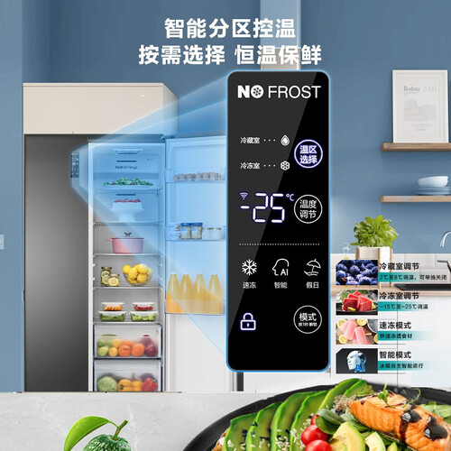 天然植萃抗菌技术,可有效过滤空气中的浮游菌,食材储存更健康。立体双风幕系统,均衡降温,制冷速度更快,冰箱内部不易结霜。