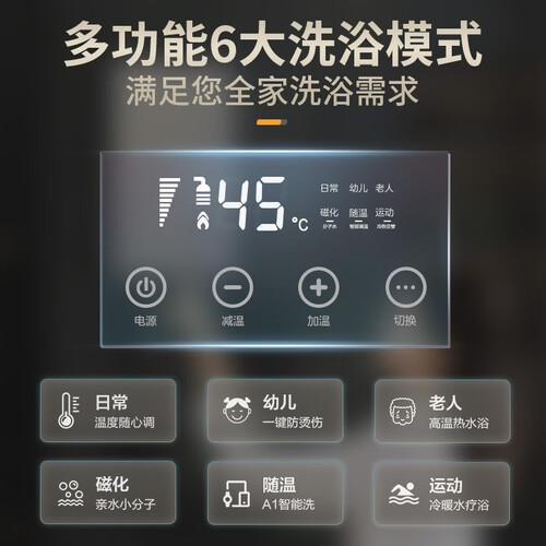 采用了即开即热的设计,当你启动热水器时,就有热水喷涌而出。采用了立体磁化和托玛琳珠材质,呵护肌肤健康。