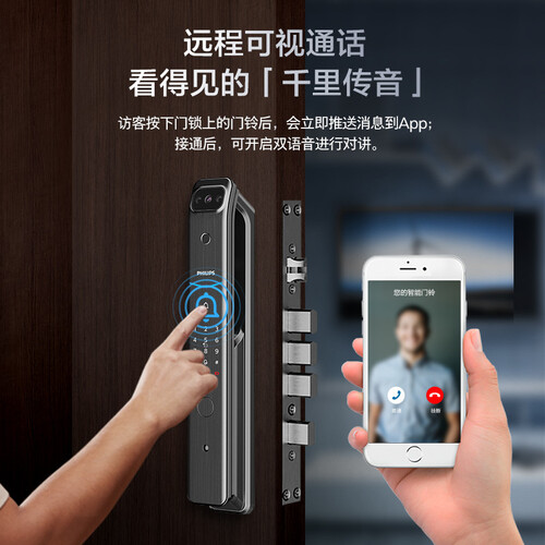 轻触锁面门铃时,铃声消息会自动转到APP上,人不用走到门前,便能和访客进行语音交流。