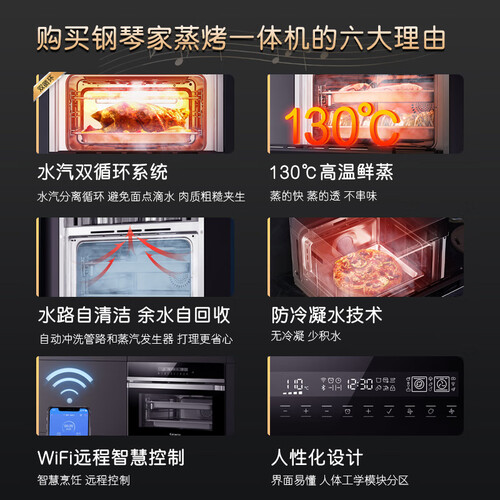 水汽双循环系统,拒绝滴水在食物的表面,更好保持美味口感。130℃高温鲜蒸,轻松应对难煮熟的食物,锁住营养。