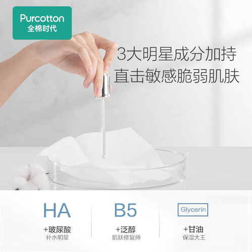 添加玻尿酸精华成分,呵护易敏感肌肤,擦拭后温和又舒适。配合纯棉材质,呵护娇嫩肌,柔顺减少摩擦力。