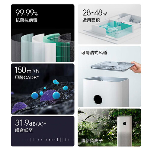 内置负离子装置,快速清新降尘,让室内的空气如室外般清新。四面环绕进风式设计,每分钟可净化6660L空气。