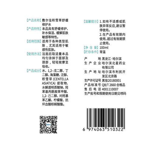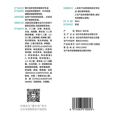 添加积雪草精华,能够舒缓你的肌肤,让皮肤不紧绷更自然。富含海藻糖等物质,能够建立水循环,更好的为肌肤补水。