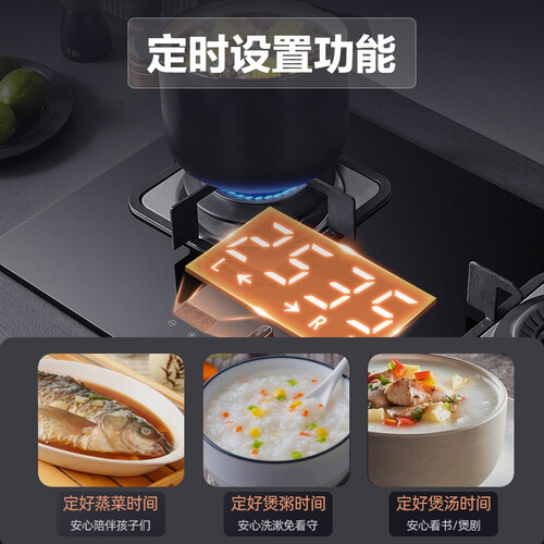 99分钟定时烹饪,焖煮自在,告别时间枷锁,无需守候,到点熄火不糊锅。5.2KW旋火爆炒,热效率高,出菜快速,口感爽嫩。