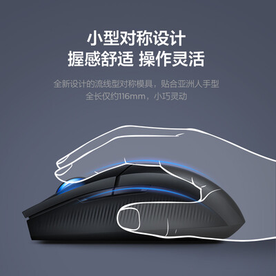 整个机身仅长116mm,精致小巧,符合人体手部曲线。左右按键寿命高达3000万次,使用时间更长,轻松应对各种大战。