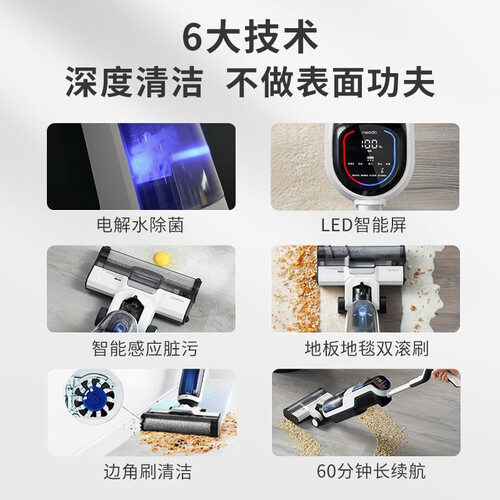 采用可拆卸边刷设计,使其贴合墙边边角,快速洁净无残留。结合3英寸LED大屏,实时播报工作情况,居家使用更省心。