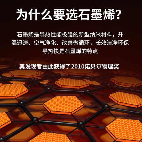采用导热更快的新型石墨烯材料,加快升温速度,快速驱散严寒。无光低噪音,夜晚畅快开,开关机、调温都可以远程遥控,舒适温度一手掌握。