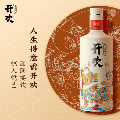 始于颜值,忠于口感,源自四川泸州酿造,只为呈现地道酱香,打造开欢经典白酒。