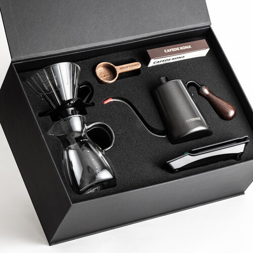 原木材质咖啡勺,质地耐用,长期使用不易磨损;高硬度搞透明度的咖啡壶,能耐瞬间的高温差。