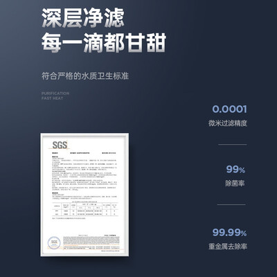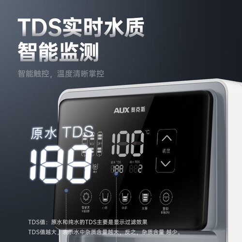 RO反渗透技术,进一步过滤水中重金属等,还原真实小分子水,出水可直饮,煲汤口感更香醇。TDS水质监测,一目了然用心喝水。
