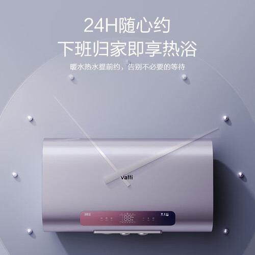 内置24小时预约的功能,下班前预约好时间,晚上回家后就能享受舒适的恒温沐浴体验。搭配流光幻变紫的色调,令人赏心悦目。