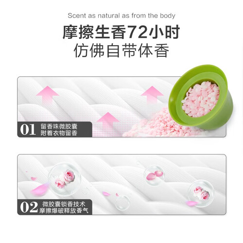 洗衣时倒入一小盖,衣物就会更加柔顺并带着令人陶醉的香气,增强你的穿衣感受;无磷无防腐剂添加,安全健康,洗涤衣物更加安心。