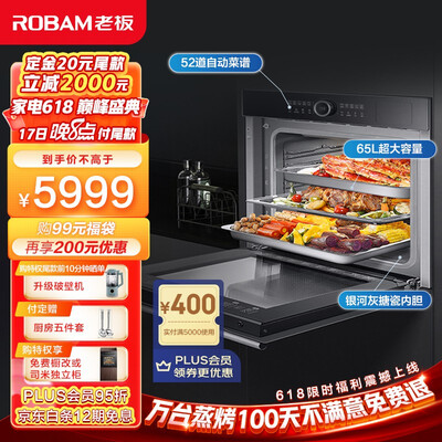 老板 智控旋钮搪瓷内胆蒸烤箱