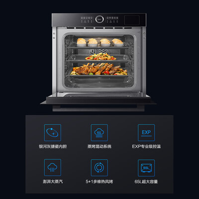 蒸烤混动系统,满足不同美食烹饪所需,紧锁营养不流失,口感外酥里嫩。5+1多维立体热风烤,保证腔内处处同温,上色更均匀。