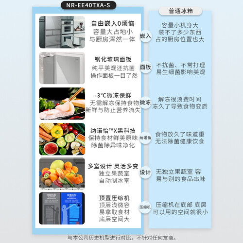 -3℃微动技术,保持食材新鲜度,无需解冻防止口感损失少。双层构造过滤网,精准自动调节室内湿度,保持果蔬脆爽口感。