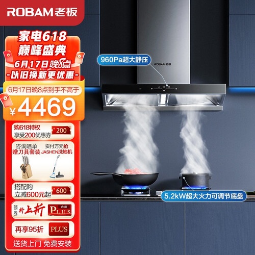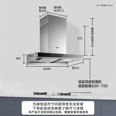 960Pa大风压,无惧高楼层和做饭高峰期,排烟顺畅不会倒灌。沉吸式造型,近距离拢吸,防止油烟扑面,烹饪体验感更佳。