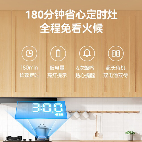 低电量亮灯提醒,便于及时的提醒更换电池,不干扰使用。定时功能,烹饪时无需看管,让你拥有更多的个人时间。
