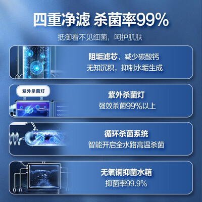 搭载四重净虑系统,能够有效过滤细菌,从而输出干净的水流。采用IPX4级的防水设计,具有一定的防水性能。