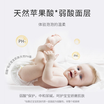 温和弱酸面层,能够中和尿碱,不刺激宝宝娇嫩肌肤。腰围采用橡筋新工艺,柔软有弹性,穿上不勒肚子。
