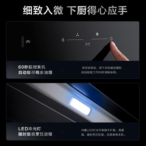 创新式两侧版面设计,形成聚拢区域,迅速吸收烟雾。351mm灵巧机身,嵌入式匠心工艺,便捷安装满足各种厨房户型。