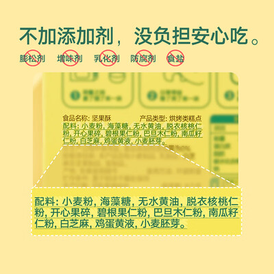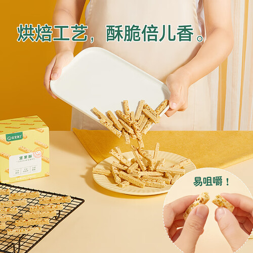 精选6种坚果籽仁,采用烘焙工艺制作,不添加食盐,还原坚果本味,给宝宝更好的营养。不含添加剂,宝宝吃得放心,口感酥脆易咀嚼。