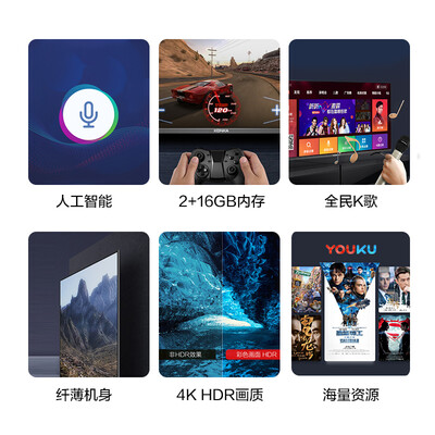 全景智慧声控技术,自动识别指令,无需手动调节换台。全新的超窄边框设计,扩大视野范围,观看更加自然清晰。