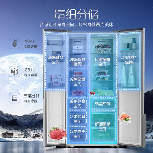 采用635升大容量设计,轻松满足囤货爱好者储物需求,储存不受限。搭载负离子健康净菌,长效净菌,守护入口食材安全。
