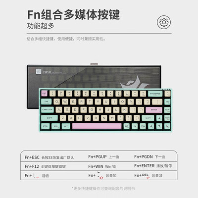 68键配合窄边框设计,减少空间占用,满足笔记本电脑桌的摆放需求。PBT半透光球帽,触感舒适不容易掉漆,久用如新。