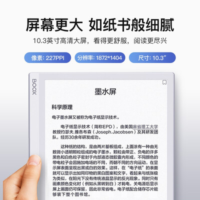 采用10.3英寸水墨大屏,高清大视野显示,阅读舒适护眼,给您纸质书般阅读体验。搭载八核处理器,性能强悍,多任务可以轻松处理。