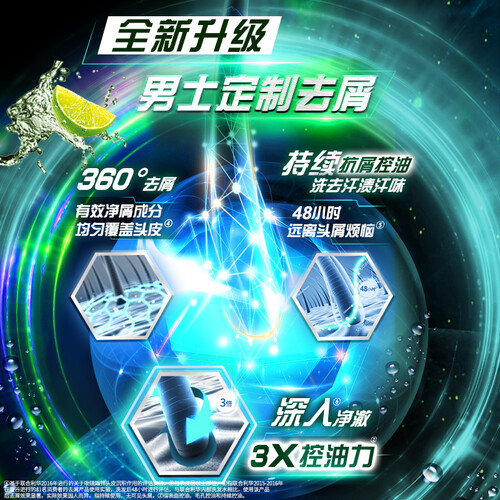 添加净屑成分,能持久去屑控油,让您的秀发帅气迷人。添加青柠,使用时会感到酷爽冰凉,让您在洗发过程中舒适享受。