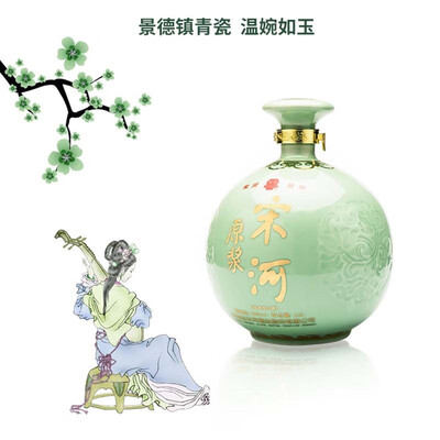 选用颗粒饱满的品质谷粮,采用传统老五甑酿造工艺,酒体绵软适中,醇厚香浓。景德镇青瓷瓶身,温婉如玉。