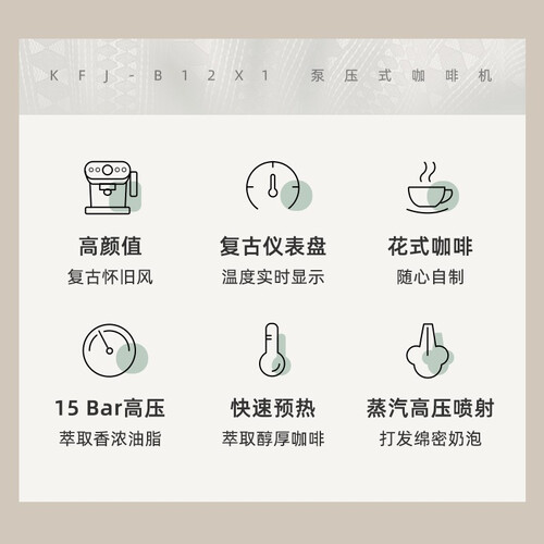 复古仪表盘设计,可以精准掌握水温,咖啡口感更香浓丝滑。通过15Bar高压穿透,更好的释放咖啡精华,饮后满口留香。