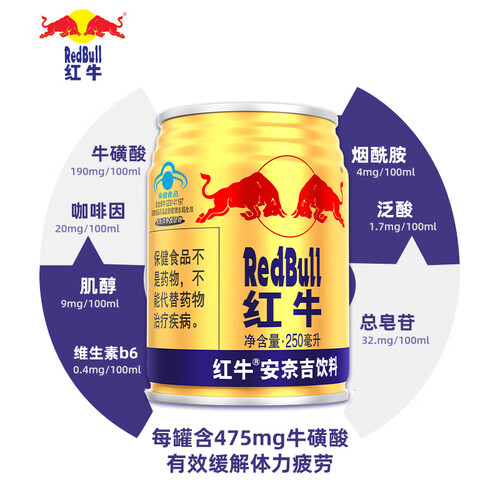 每罐含475毫克牛磺酸,充分补充身体所需能量,健康营养。含西洋参提取物,丰富畅饮,满足需求。