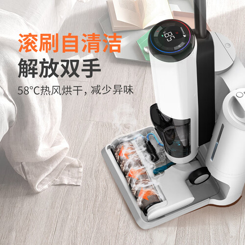 搭载58℃热风烘干滚刷,有效烘干拖洗的地面,预防细菌的滋生。内置地面污渍检测功能,智能清除地面污垢,节省清洁的时间。