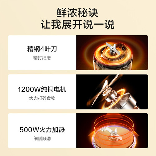 一体化结构的机身,轻巧便携,外出携带安心无忧。六大功能设计,满足花样润养,果蔬汁、奶昔在家就能搞定,制作美食灵活不受限。