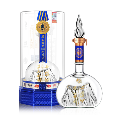 采用九棱形高透亚克力包装,瓶身晶莹剔透,立体精致,搭配高雅克莱因蓝和“五牛迎百福”绘图,颇具艺术感,值得典藏。