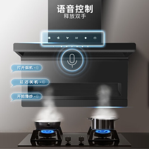 搭载AI语音控制功能,一句话轻松召唤,烹饪更省心。25立方米的大风量设计,瞬间带走油烟,厨房整洁美观。
