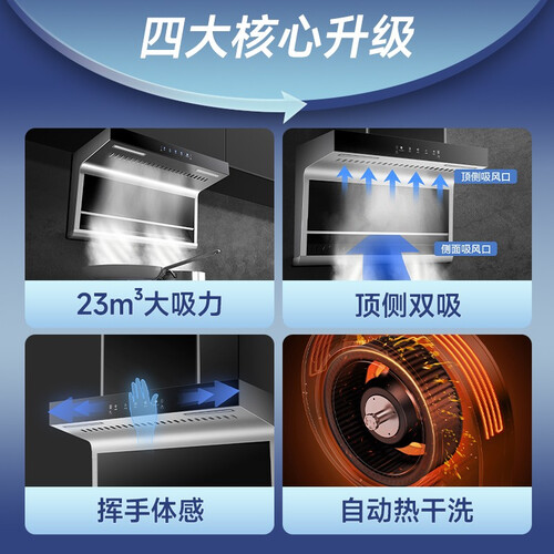搭载挥手智控功能,开机不用担心弄脏面板,风量一挥即来。一键自动热清洗,清洁省力又省时,彻底解放双手。