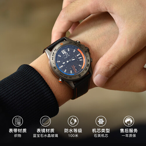 这款腕表配备了防反光蓝宝石水晶镜片,具有耐磨耐刮的特点,轻松读时。外壳由316精钢材质制作而成,坚固不易损坏。