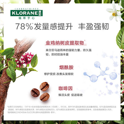 金鸡纳树皮提取物,持久强韧,即使控油丰盈。烟酰胺&咖啡因,修护受损,改善头发细软,焕活头皮促进吸收,弹力满满不易断。